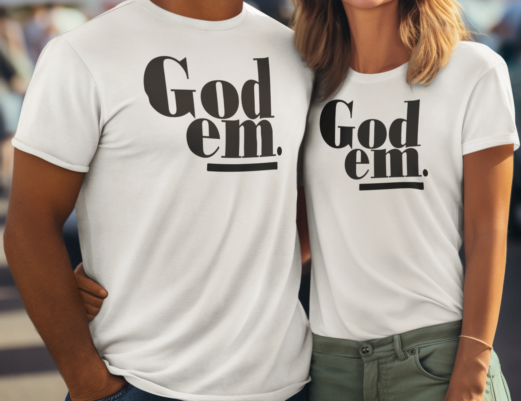 Our signature design "Godem" is a phrase that represents the greatness of God revealed in the Scriptures. The purpose of this design is to help spark conversations about the greatness of God revealed in the Scriptures and to declare with boldness His awesomeness.