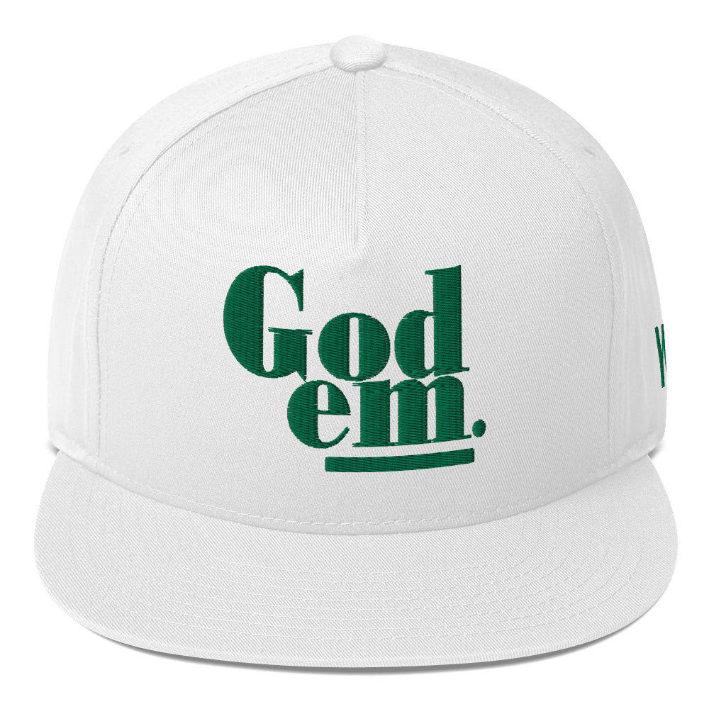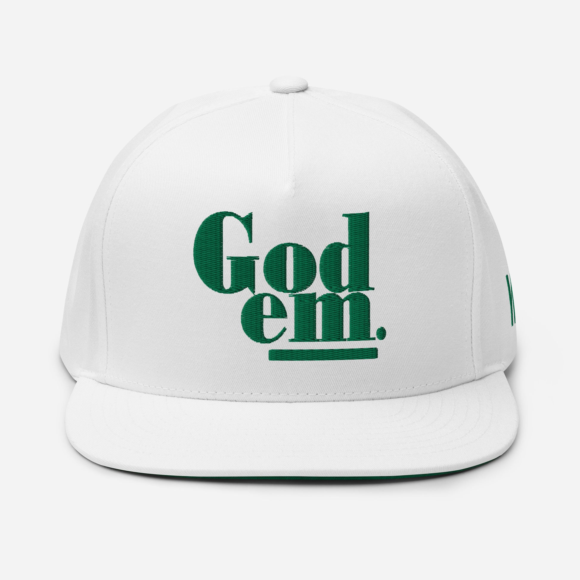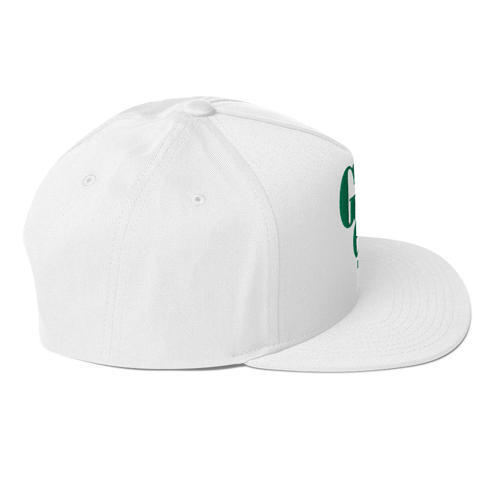 Godem Flat Bill Cap (White/Green) Flat Embroidery